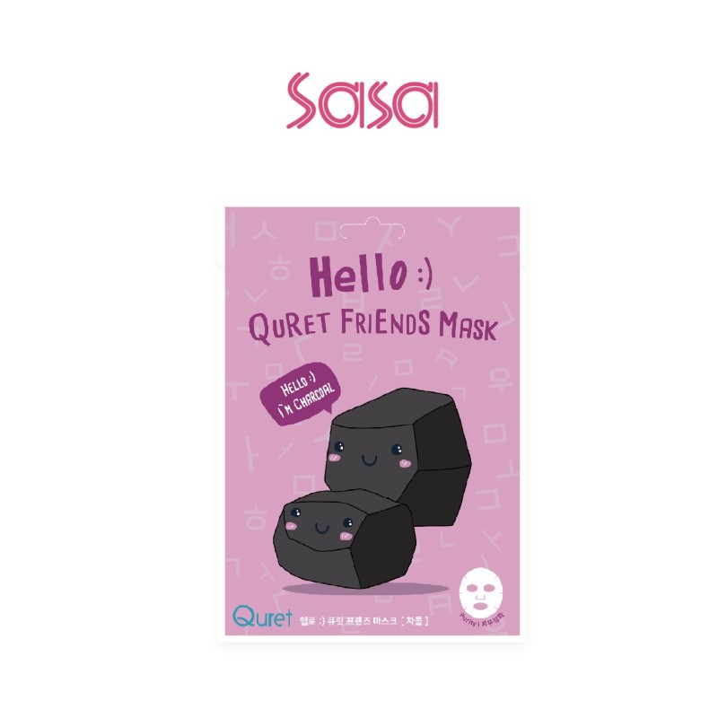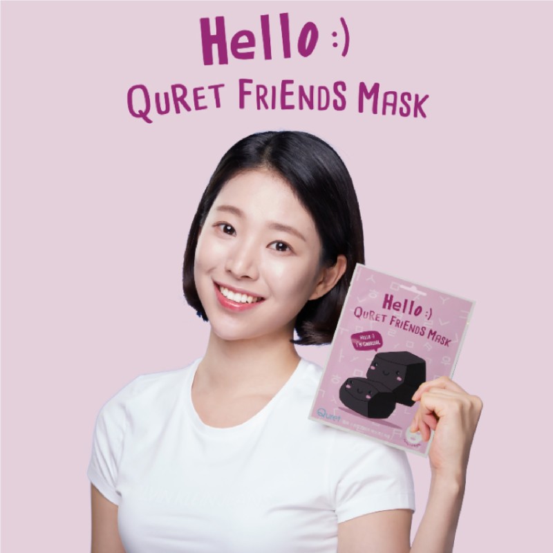Product Detail Description : Quret Hello Friends’ features Baboo extracted Natural Bamboo Sheet delivers sheet essence effectively on to your skin without getting dried fast. Soft and convenient fit by sheets’ flexibility boosts up sheet masks’ effectiveness. Feel the difference now!Charcoal extract adsorbs sebum and makes clean. Treat your skin clear.
