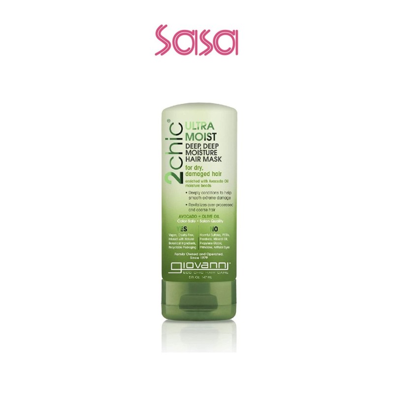 Dual moisture complex avocado + olive oil. Eco chic body care. 100% vegetarian / no animal testing. Beauty from the elements is chic on the street. Rich with Vitamin C, e, k & b6 antioxidants . For dry, damaged hair. Helps repair extreme damage. Revitalizes overprocessed coarse hair. Helps prevent splits & breaks. 2chic or not 2chic? 2chic is to...enrich. Satisfy your hairs deepest cravings for intense nourishment & nurturing: unmask your hairs raw allure with 2chic avocado & olive oil deep moisture hair mask. A delectable botanical blend of buttery avocado & golden olive oil, formulated in our exclusive dual moisture complex to replenish hair that feels full, lifeless & brittle. Our rich formula improves rough texture & makes hair sensuously touchable. Avocado oil beads add an extra dose of nourishment. Will not strip or fade color. Ideal for hair thats heatstyled often & 2chic to be denied.